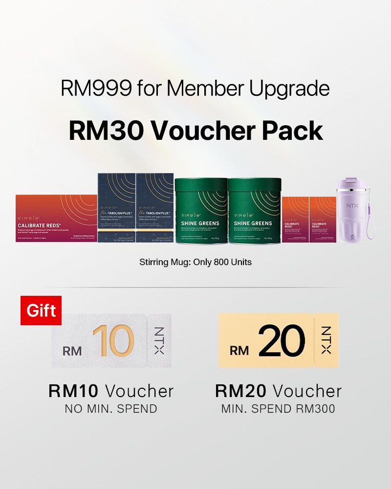 Reds*1+Coffee Pro*2+Greens Home Edition*2+Reds 10 sachets*2+Stirring Mug*1 Free RM30 voucher pack